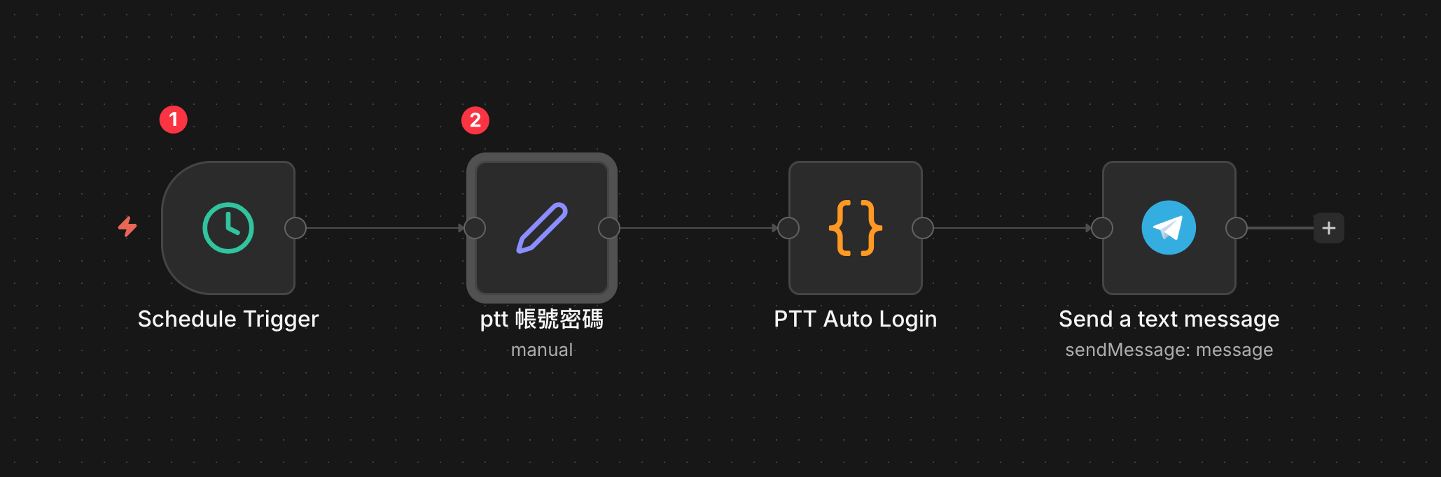 如此就完成了,n8n 版本的 PTT Auto Login 囉!
