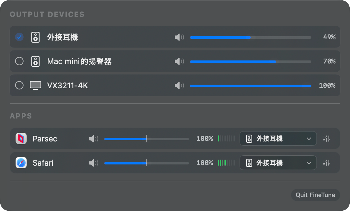 FineTune 的功能雖然不像 SoundSource 那樣全面,但勝在免費且開源