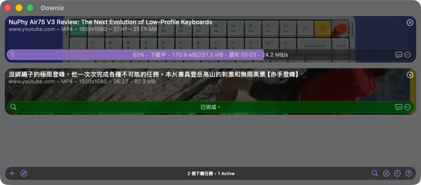 Downie 是一套非常優秀的網路影片下載工具,支援超過 1000 種線上影片網站,以及 YouTube 4K 影片的下載