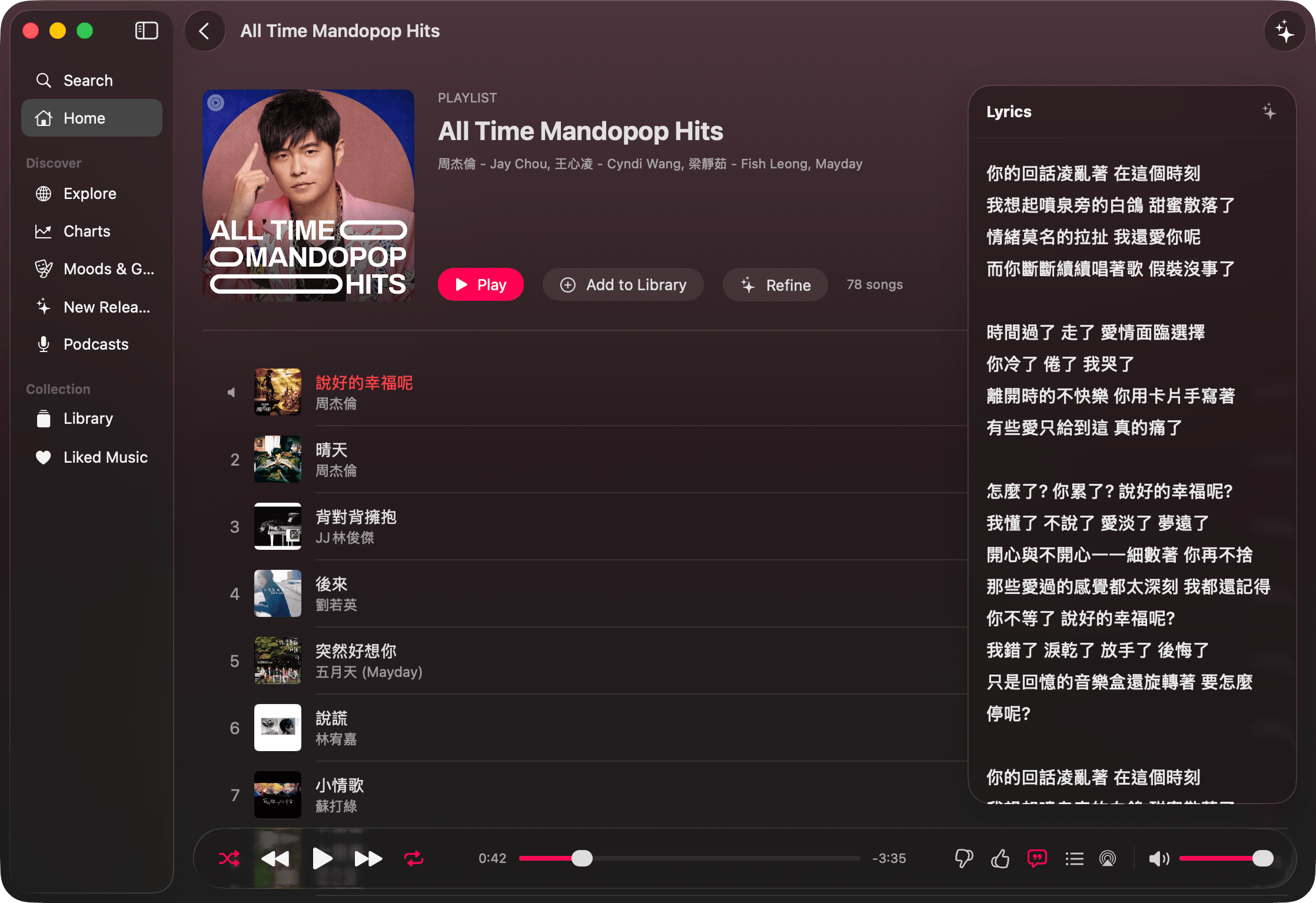 軟體完成度跟系統整合度都很高,也有歌詞顯示(但不是所有歌都有)